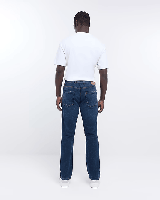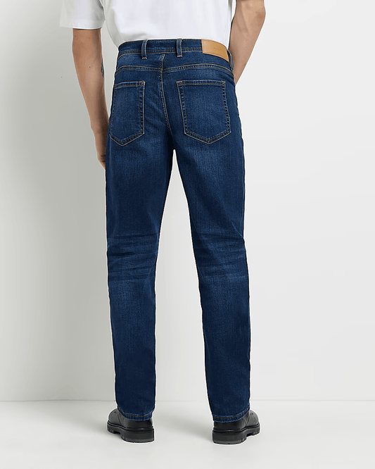 BLUE DARK WASH STRAIGHT FIT JEANS