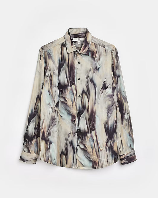BEIGE REGULAR FIT PRINT LONG SLEEVE SHIRT
