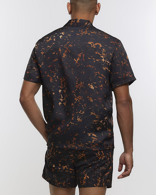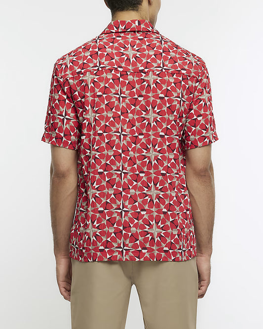 RED REGULAR FIT GEO PRINT TEXTURED SHIRT