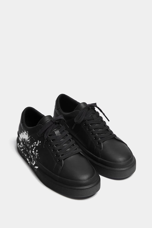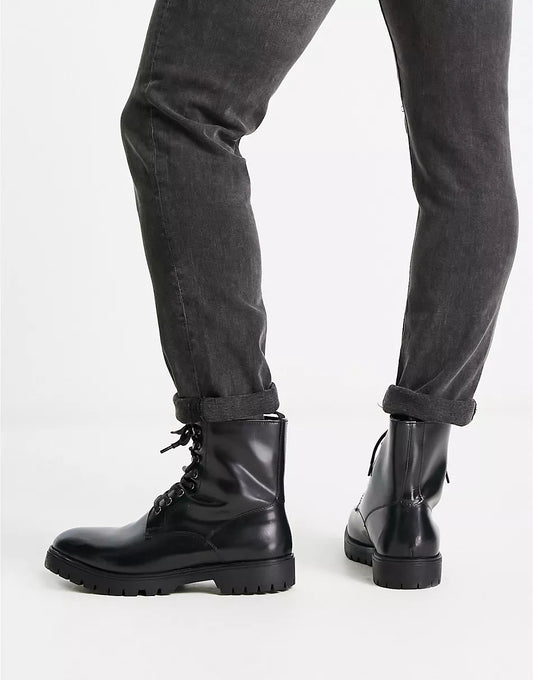 WIDE FIT CHUNKY HARDWARE LACE UP BOOTS IN BLACK LEATHER