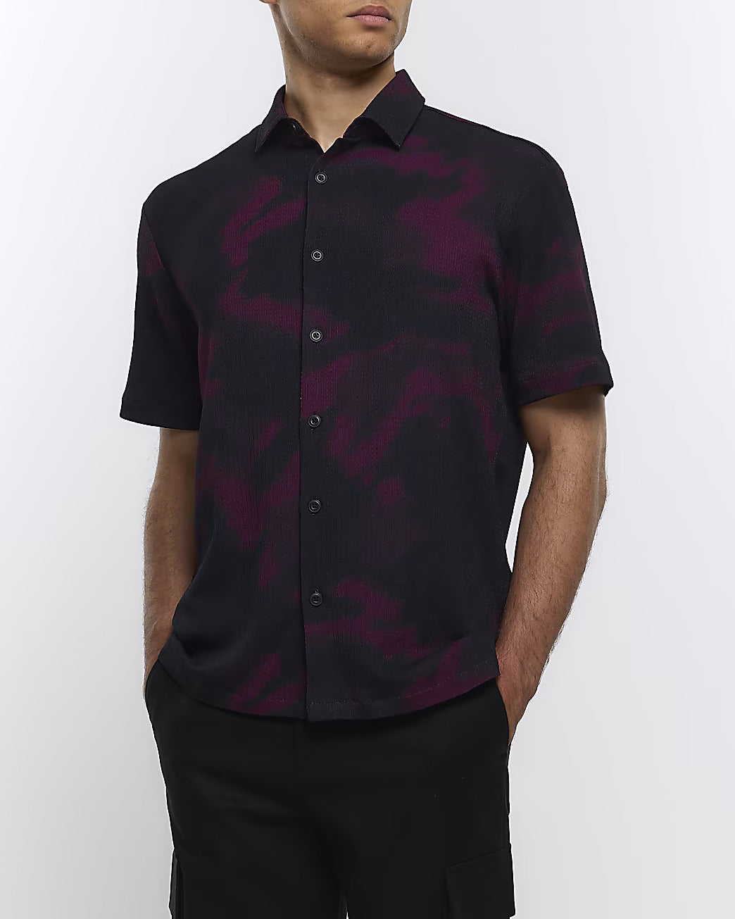 PURPLE REGULAR FIT TEXTURED PRINTED SHIRT